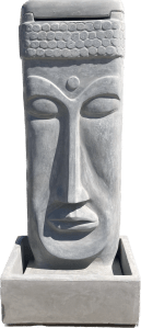 39” Tall, 28”x21” Wide Base. Available in: Natural $450. Gold, Bronze, Brown acid wash $500. *Fountain options for water coming out of the top of the head or out of the horizontal hand, or both.